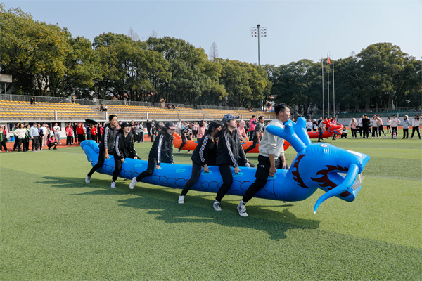 本次趣味运动会共设置了 “奋勇奔腾”“时代巨轮”“步步高升”“超级汉诺塔”“龙行天下”及“陆地冰壶”六个比赛项目,融趣味性与观赏性于一体,竞技与娱乐相结合。