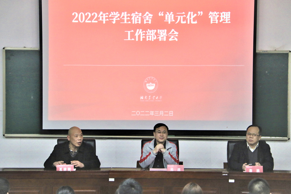本网讯(学工部 刘相如)3月2日晚,学工部组织全体驻楼栋辅导员、学生宿舍楼栋长召开2022年学生宿舍“单元化”管理工作部署会。副校长吴波,党委学工部相关负责人出席会议。