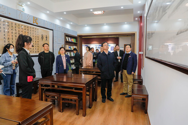 会前,陈弘带队实地考察了动物医学院读书角、教师发展中心、学术交流室、杨毅实验室及经济学院党建阵地、学术阵地、国学天地、中非农业发展与合作基地等,共同感受与学习学院在环境育人、文化建设方面的亮点和经验。