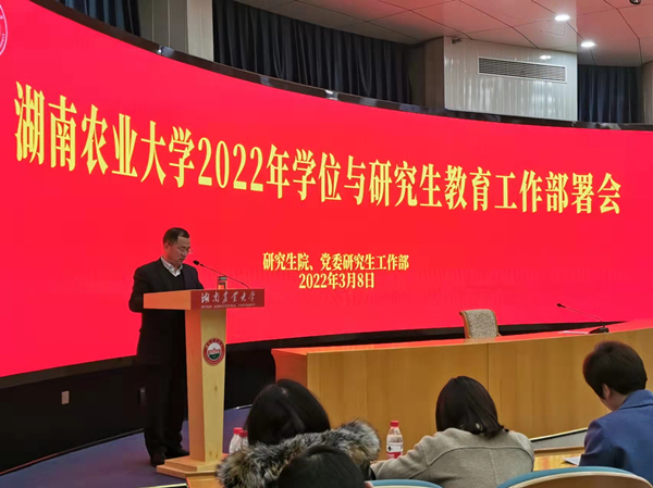 研工部部长谢方平全面总结了我校2021年学位与研究生教育工作,分析了研究生教育工作在招生、人才培养、导师队伍、学位点建设、学位工作及研究生思政等方面取得的成绩和亮点,指出了存在的不足,并对2022年学位与研究生教育工作进行了安排部署。