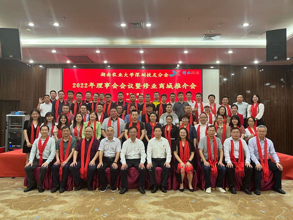 陈弘一行还出席了2022年湖南农业大学深圳校友分会理事会会议。会上,深圳校友分会会长李朝阳致欢迎辞,秘书长刘荣欣作理事会工作报告,段美娟作120周年校庆筹备工作介绍,符少辉作为学校教师代表发表深情感言,深圳校友分会名誉会长唐慧斌对深圳校友分会的发展进行了总结和展望,并特别介绍,深圳校友分会为母校120周年校庆开发了“修业商城”项目,成立了“修业一号”公益分红基金,设立了专门感恩账号。校友企业惠州市荣力达物流有限公司和校友陈贵云夫妇为表达对母校发展的支持,现场分别为母校120周年校庆捐赠了人民币50万元和价值50万人民币的德国KLOTZ数字会议和音频扩声设备,为感恩账号注入了首笔100万元的捐赠。