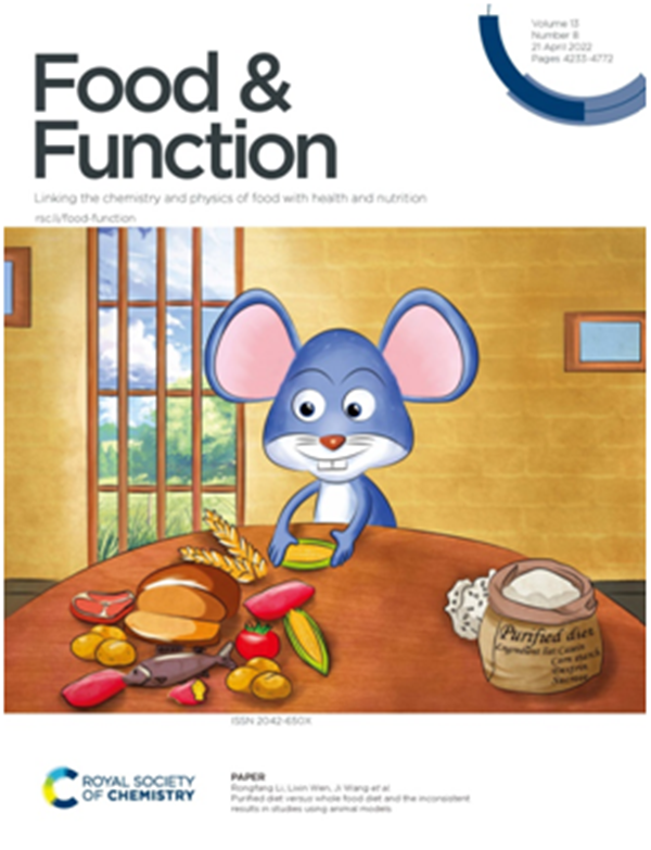 本网讯(动医学院 李荣芳)近日,动物医学院文利新教授团队最新研究论文“Purified diet versus whole food diet and the inconsistent results in studies using animal models”在医学领域国际权威学术期刊《Food & Function》(农林科学TOP期刊,JCR Q1,IF 5.396)在线发表,并被遴选为封面文章(Outside Front Cover)。该研究工作由王吉博士和张琳玉硕士主导完成,湖南农业大学为论文的第一作者单位,2021届研究生张琳玉为论文第一作者,王吉博士为论文主通讯作者,文利新教授和李荣芳博士为并列通讯作者。