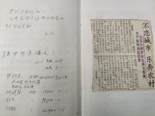 在整理和挖掘文物时,工作人员惊喜地发现了一本“随身笔记”。经过时间的洗礼,纸张虽已泛黄,但打开之后,工稳齐整的字迹跃然纸上,我们仍能感受到胡笃敬老先生朴诚严谨的治学风范。摘抄的“明日复明日,明日何其多”“白日莫闲过,青春不再来”等诗句,是他珍爱时光、笃行不怠,引导学生光阴荏苒、切莫年华虚度的真情流露。笔记中还不乏从报纸中剪贴的与农业农村相关的内容,尤其是老先生“农村大有作为!不是农学专家也可为农业生产作出贡献!”的批注更是直击灵魂的思想启迪,对广大师生来说,至今仍然受用。