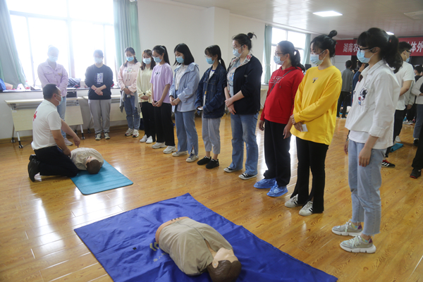 揭幕仪式后,50多名学生在红十字会专业老师的指导下,学习了生活中常见紧急情况的应急处理常识,并重点模拟演练了急救过程中心肺复苏术与自动体外除颤仪的操作步骤。