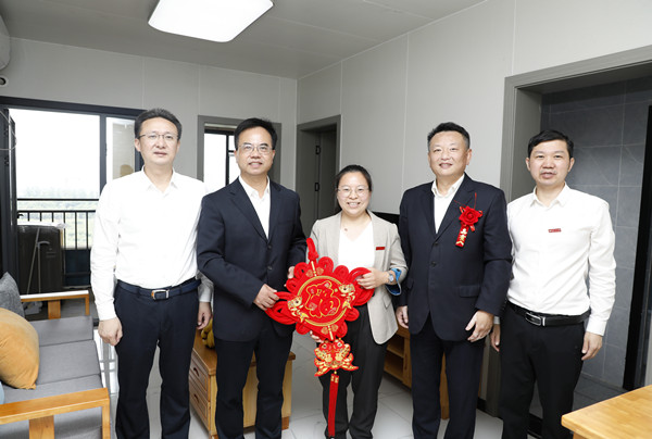 领导与嘉宾问候入住青年人才 熊赳 摄