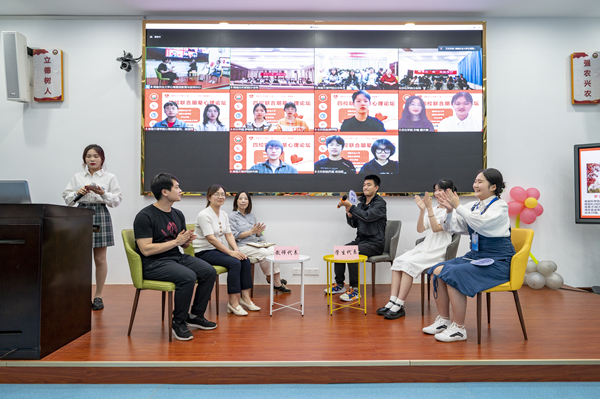 开幕式后,四校师生联合开展了朋辈心理论坛。朋辈学生与教师代表以“朋辈互助与自我成长”为主题展开交流与讨论。