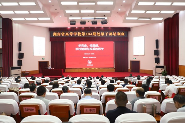 本网讯(基建处 陈丁山)5月17日上午,中国工程院院士、校长邹学校以《学党史 悟思想 学校管理与改革的思考》为题,应邀为湖南省高等学校第134期处级干部培训班全体学员授课。