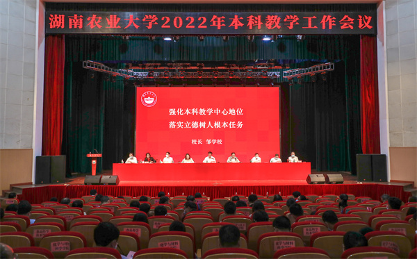校长邹学校以“强化本科教学中心地位落实立德树人根本任务”为题发表讲话。他指出,要统一思想认识,牢固树立本科教学工作的中心地位。坚持把构建一流本科教育、培养一流人才放在学校工作的首位,以“乡村振兴”“三高四新”战略定位对人才的需求和学生发展需求为导向,紧扣本科教育教学改革主线,全面提升人才培养能力和人才培养质量。做好顶层设计,扎实推进本科教育教学改革工作。抢抓机遇,全面加强引领农业人才培养的农科类专业、支撑农业科技快速发展的工科类专业、服务“大国三农”需求的文科类专业改造重构、转型升级。加强协同联动,持续推进上一轮审核评估整改工作,对照新一轮审核评估实施方案要求和指标体系,确保顺利通过教育部第五轮本科教育教学审核评估工作。