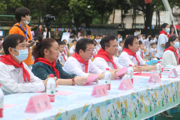 校党委书记陈弘、副校长陈光辉出席,党政办、团委、后勤保障中心、化材学院、东沙社区等单位负责人和孩子们共庆六一,共享科学盛宴。