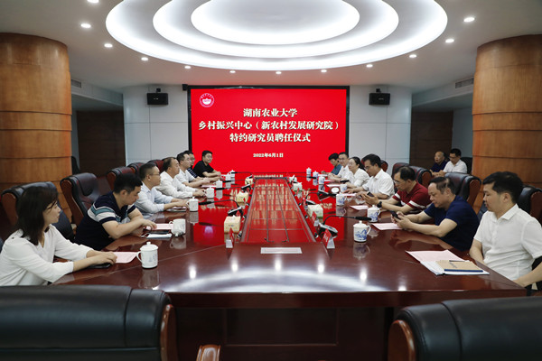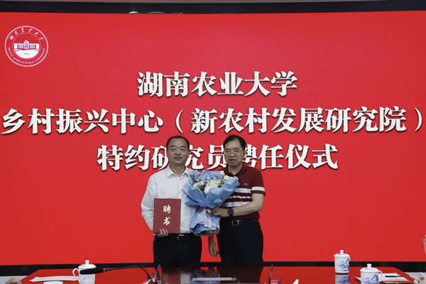 活动开始前,学校在文渊馆党委会议室举行了乡村振兴中心(新农村发展研究院)特约研究员聘任仪式,聘请周卫星为乡村振兴中心(新农村发展研究院)特约研究员。校党委书记陈弘主持仪式。中国工程院院士、校长邹学校为周卫星书记颁发了聘书。