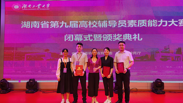 本网讯(学工部 王方晖)6月1日至2日,由湖南省教育厅举办的湖南省第九届高校辅导员素质能力大赛决赛在湖南工业大学举办,我校荣获本科组团体季军,取得了我校在本项赛事上的突破性成绩。园艺学院辅导员周星、商学院辅导员杨日映、教育学院辅导员王勇乾分别荣获本科组个人一等奖、三等奖和优胜奖。