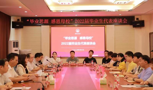 本网讯(党委学工部 周文)6月8日下午,学校在十教北410召开“毕业思源 感恩母校”2022届毕业生代表座谈会。校党委书记陈弘,副校长张立,校党委委员、组织部部长毛祥成出席,教师代表钱论文、杨日映、苏招红,宣传部、学工部、教务处、就业创业指导服务中心、校友事务与发展联络办等单位负责人及毕业生代表参加,座谈会由张立主持。