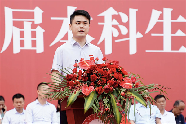 教师代表、2022年湖南省高校辅导员素质能力大赛一等奖获得者、园艺学院周星寄语毕业生:要用理想信念作为人生指路明灯,用理性平和的心态面对挫折,意志不能被“乱花”迷眼,作为不能被“舒适”消磨,正气不能被“物欲”摧毁,心向远方,行稳致远,在实现中国梦的生动实践中放飞青春梦想。