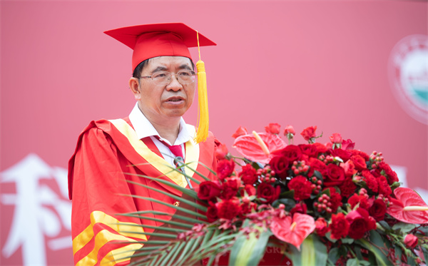 在毕业典礼这个特殊的“课堂”上,校长、中国工程院院士邹学校代表学校对全体2022届本科毕业生致以最诚挚的祝贺和最美好的祝愿,并以《在实现民族复兴的赛道上跑出湘农学子的时代风采》为题为即将踏上全新征程的学子们讲授“最后一课”。他寄语全体毕业生,一是要永葆青春朝气,做勇攀高峰的奋斗者。保持终身学习的习惯,发扬求真务实的精神,用脚步丈量责任,以实干书写担当,努力成为心中有梦、眼中有光、脚下有路的时代新人;二是要传承家国情怀,做强农兴农的践行者。立志强农兴农,践行知农爱农,传承和发扬荣誉校长袁隆平院士百折不挠、潜心钻研、献身农业的精神,做一颗爱党爱国、勇于创新、胸怀天下的好种子;三是要担当时代重任,做民族复兴的圆梦者。勇立时代潮头,争做时代先锋,涵养以天下为己任的胸襟抱负,在实现民族复兴的赛道上跑出湘农学子的时代风采,跑出当代青年的最好成绩!