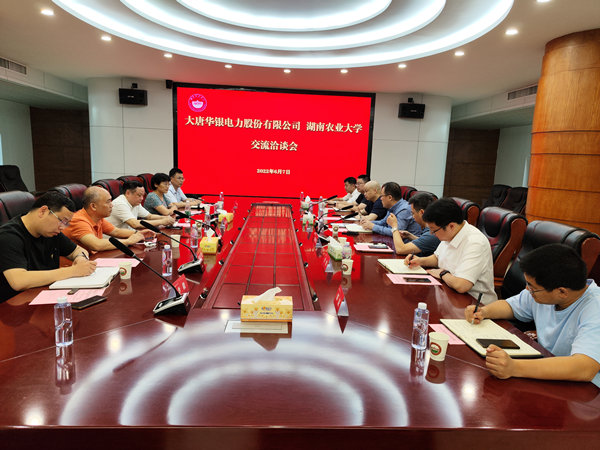 本网讯(乡村振兴中心 裴昌胜)6月7日上午,大唐华银电力股份有限公司来校,就大唐华银娄底生态治理光伏项目复合型开发进行洽谈。洽谈会在文渊馆党委会议室举行,副校长唐圣松出席。
