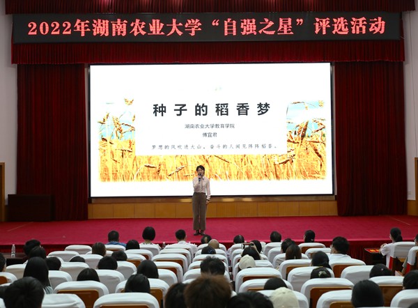 进入决赛的15位候选人分享了他们的自强故事,展示了当代大学生吃苦耐劳和自强不息的精神,用实际行动告诉大家要勇于面对生活的磨难,在困难中积极寻求突破,在发展中寻求机遇,在奋斗中实现理想。教育学院傅宜君等十人获得湖南农业大学“自强之星标兵”荣誉称号,植保学院易拓获评自强之星人气奖。教育学院傅宜君、动医院林洪广同学分别获得第一、二名,被推选参评2022年“中国大学生自强之星”。