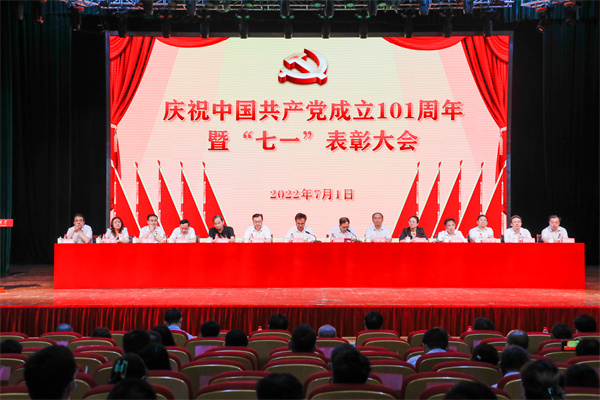 本网讯(组织部 李翀)7月1日上午,学校在大礼堂隆重举行庆祝中国共产党成立101周年暨“七一”表彰大会,中国工程院院士、学校党委副书记、校长邹学校主持大会。