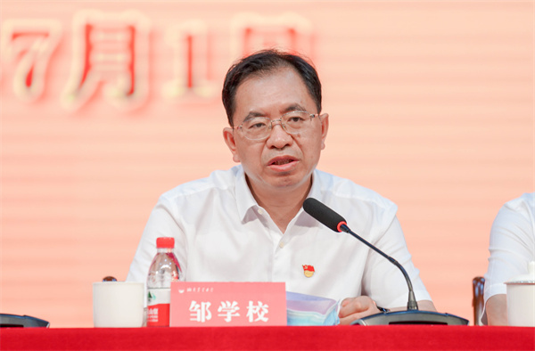 校党委书记陈弘发表讲话。他带领大家深情回顾了党的百年光辉历史。中国共产党从南湖上的一叶轻舟起航,带领中国人民为中华民族伟大复兴一路奋进,党的光辉历程不仅让我们倍感自豪,也让我们对伟大祖国的光明未来充满信心。新世纪以来,湖南农业大学牢固树立“以立德树人为根本,以强农兴农为己任”的办学指导思想,着力培养知农爱农新型人才,今天的湖南农业大学正意气风发、昂首阔步,奋进在建设“质量卓越、优势突出、特色鲜明”的国内一流农业大学的宏阔大道上。陈弘要求,全校各级党组织、全体党员干部、广大共产党员,要旗帜鲜明讲政治,全面提高党的政治领导力;牢记使命强担当,全面提升党的发展引领力;固本强基抓党建,全面增强党的群众组织力。全体共产党员、全校师生员工要更加紧密地团结在以习近平同志为核心的党中央周围,继续发扬“朴诚、奋勉、求实、创新”的校训精神,以传承者的担当,开拓者的勇气,为国内一流农业大学建设目标不懈奋斗,为实现农业农村现代化、实现农业科技自强自立,推动乡村振兴作出新的更大贡献,以优异成绩向党的二十大献礼!