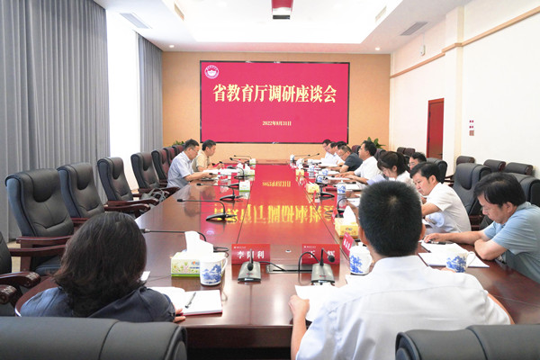 本网讯(宣传部 王薇薇)8月31日上午,省教育厅党组成员、总督学郭建国,省教育厅教师工作与师范教育处处长张平来校检查秋季开学准备工作并调研教师工作情况,双方在一教401会议室展开座谈。校党委书记陈弘,副校长陈光辉,学校相关职能部门负责人参加会议,会议由陈弘主持。