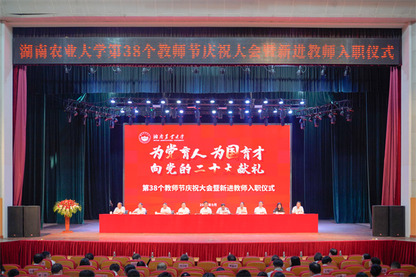 本网讯(人事处 欧阳晨)三尺讲台系国运,一生秉烛铸民魂。为庆祝第38个教师节,9月9日上午,学校在大礼堂举行以“为党育人、为国育才,向党的二十大献礼”为主题的教师节庆祝大会暨新进教师入职仪式。中国工程院院士、校长邹学校主持大会,中国工程院院士、学校学术委员会主任刘仲华,全体在家校领导出席。