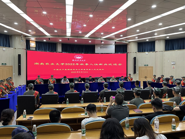 本网讯(人武部 雷志敏)9月14日,学校2022年秋季入伍新兵欢送会在生命科学楼国际会议厅举行。副校长吴波,芙蓉区委常委、区人武部政委王黔军,学校人民武装部部长李姣,相关二级学院主管学生工作副书记,辅导员,征兵专干,家长代表及2022年秋季全体入伍新兵和退役士兵代表参加会议。