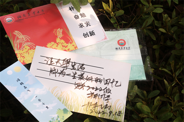 “让大学生活成为一生美好的回忆。”校党委书记陈弘写下寄语赠予全体2022级新同学,在新生踏入湘农的第一天送上美好祝福。