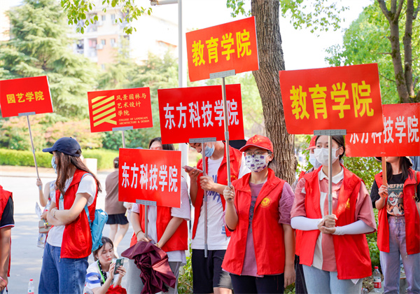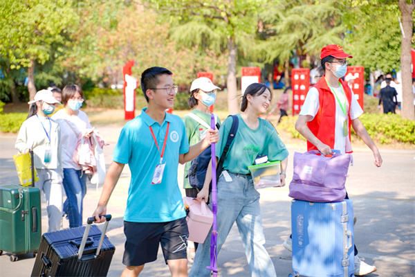 学校志愿者、新生助班、纠察队员、党员先锋队等近千名志愿服务人员投入到迎新工作中,在交通引导、测温查码、行李托运、报到指引、沿路咨询等各工作点都能见到他们的身影,为新生入校“保驾护航”,成为新生贴心的“守护者”,志愿者们用最真挚的笑容、周到的服务让新生放心、家长安心。