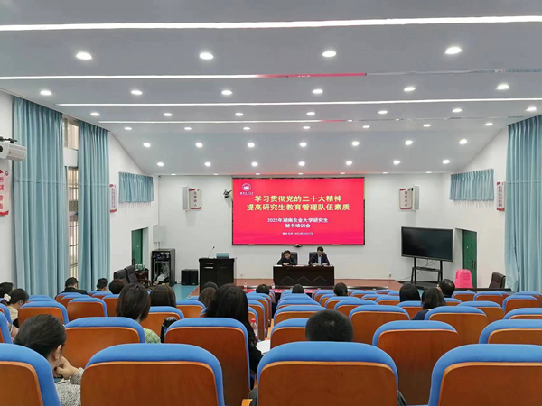 本网讯(研究生院 袁冬)为全面贯彻落实党的二十大精神,提升我校研究生教育管理队伍工作能力与业务水平, 10月27日学校在老T6教室举行2022年研究生教务秘书培训会。原副校长曹福祥出席,研究生院院长谢方平,以及全校各学院的研究生秘书和研究生院部分科室工作人员参加。
