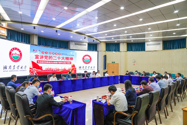 宣讲中,张迎春深入阐释了党的二十大的重大意义和深远影响,围绕党的二十大的主题、过去五年的工作和新时代十年的伟大变革、马克思主义中国化时代化、中国式现代化、全面建设社会主义现代化国家的目标任务、坚持党的全面领导和全面从严治党、应对风险挑战等7个方面,谈了自己学习党的二十大精神的认识体会,并要求大家深刻领会把握党的二十大精神,提高保障国家粮食安全的思想自觉、政治自觉和行动自觉。