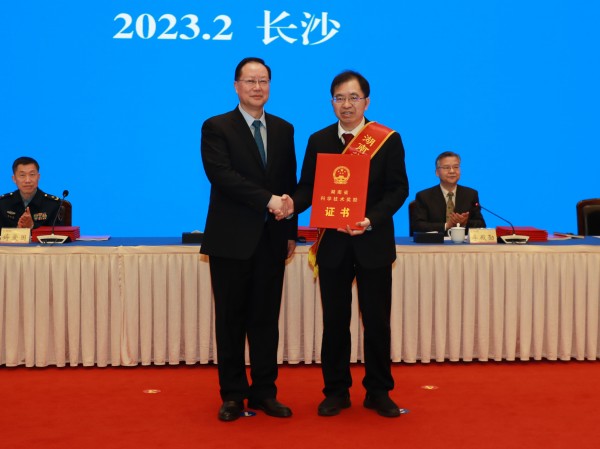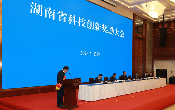本网讯(科技处 武涛 李杰)2月24日,湖南省科技创新奖励大会在长沙召开。省委副书记、省长毛伟明出席大会并为2021年度湖南省科学技术奖获奖代表颁奖。