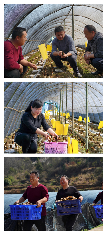 放眼望去,一簇簇羊肚菌错落有致地生长在菌垄里,乳白色的菌柄支撑着灰褐色的菌盖,鲜嫩肥厚,长势喜人。驻村工作队和村民们正拿着小刀忙着采摘,欢声笑语不断,呈现一片春日好“丰”景。