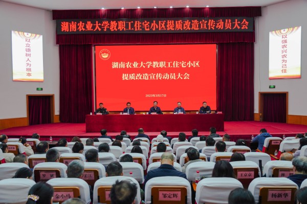 本网讯(后勤保障中心 蔡畅)3月17日上午,学校在修业讲堂召开教职工住宅小区提质改造宣传动员大会。长沙市芙蓉区东湖街道、芙蓉区行政执法局东湖中队、东湖派出所、东沙社区等有关部门来校就城镇老旧小区提质改造作政策宣讲。校党委书记陈弘,校党委委员、副校长吴波,陈光辉,学校宣教工作小组成员单位和责任单位主要负责人,离退休业主代表,业主委员会代表,在职职工业主代表等160余人参加会议。会议由陈光辉主持。