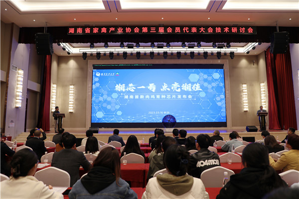 会议由动物科学技术学院院长、湖南家禽产业技术体系首席专家贺喜主持。我校畜牧学科带头人、中国工程院院士印遇龙和国家肉鸡产业技术体系育种岗位专家、中国农业科学院北京畜牧兽医研究所研究员赵桂苹分别发来视频祝贺“湘芯一号”的成功发布。