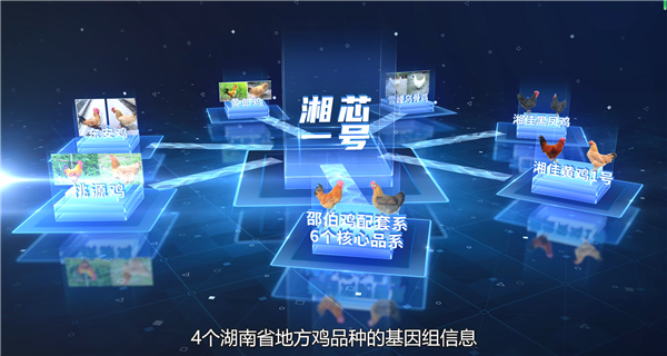 “湘芯一号”集合了湘佳股份自主培育的湘佳黑凤鸡、湘佳黄鸡1号、邵伯鸡配套系的6个核心品系和桃源鸡、东安鸡、黄郎鸡、雪峰乌骨鸡4个湖南省地方鸡品种的基因组特异信息,通过全基因组关联分析、候选基因分析等方法,筛选出与优质黄羽肉鸡饲料转化率、屠宰性状以及繁殖性状显著相关的60784个重要SNP位点,研发出专门用于培育湘佳自主核心优质鸡的育种芯片,填补了湖南黄羽肉鸡育种芯片的空白。