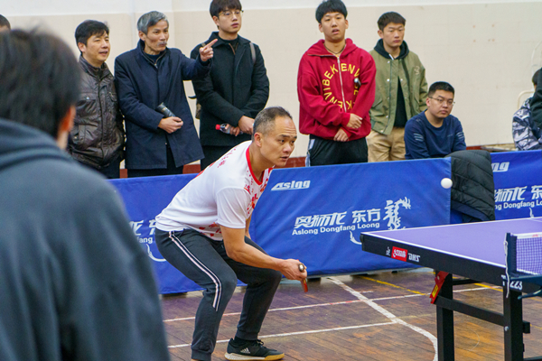 上午9:00比赛正式开始,赛场上同学们和导师配合默契,他们全神贯注,防守进攻切换自如,摆短、劈长、快拉、侧切、弧圈球、削球、扣杀等专业技术动作信手拈来。四个小组同时开赛,球桌上“乒乒、乓乓”你来我往,呐喊声、加油声在体育馆回响不绝。