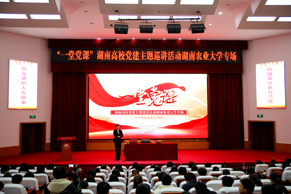 本网讯(学工部 朱逸飞)为推动学习贯彻党的二十大精神走深走实,充分发挥党建引领和培育作用,凝聚起青年师生的奋进力量,3月22日,由中共湖南省委教育工委主办、湖南教育电视台承办的“一堂党课”湖南高校党建主题巡讲活动走进我校。