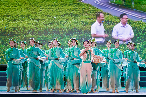 原创舞蹈《盼》特别邀请了刘仲华院士上台与观众交流互动。舞蹈描述了采茶姑娘环山而上,喜满山新叶随春风而来的景象,讲述了在“一带一路”发展背景下,刘仲华院士团队带领湖南茶叶走出国门、走向世界的故事,表达了“茶叶强国梦”和“中国茶香飘世界梦”的美好愿景实现。