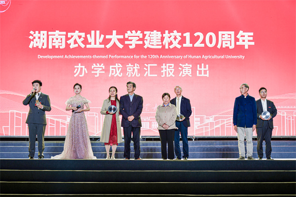 特别祝福环节,师生校友唱响《湖南农业大学校歌》,台上台下全场合唱《生日歌》将晚会推向高潮,一句句“生日快乐”饱含着全体湘农人对母校的深切祝福和深厚情谊。