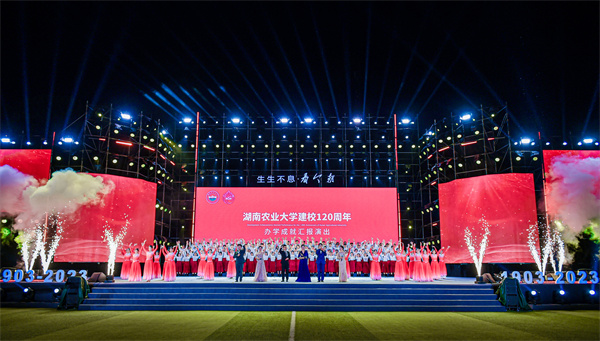 乐声悠扬,舞步翩迁,整场晚会大气恢弘,感情真切细腻,精彩纷呈、掌声不断。学校把文化育人理念渗透于建校120周年系列活动之中,将各项活动与弘扬中华优秀传统文化、传承学校优良校风学风紧密结合,营造了积极向上的文化氛围,生动诠释了学校在党和国家历史发展与变迁中以为中华之崛起、为祖国培养栋梁人才为己任的厚重情怀,彰显了湘农人砥砺前行、不懈奋斗的坚实脚步。
