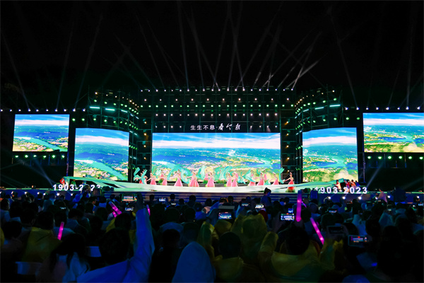 东田径场内灯光璀璨,欢动与祝福交织。舞蹈、歌曲、朗诵、情景剧等多种类型的节目精彩纷呈、轮番上演,舞美效果美轮美奂,青春之歌在校园中久久回荡,炫美色彩在校园上空绚丽绽放。