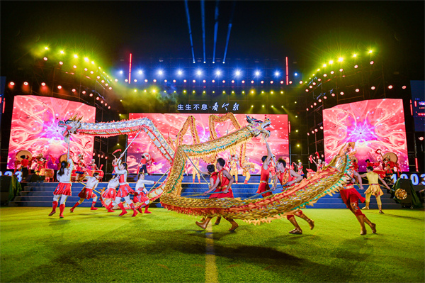 民俗节目《鼓跃龙腾》通过苗歌、苗鼓和舞龙的结合,展现了苗寨在新时代中欢腾喜悦的生机,讲述了学校在花垣县麻栗场镇新科村、望高村、那光村等地开展精准扶贫,助力乡村振兴的故事。