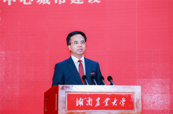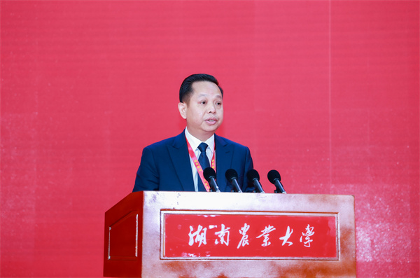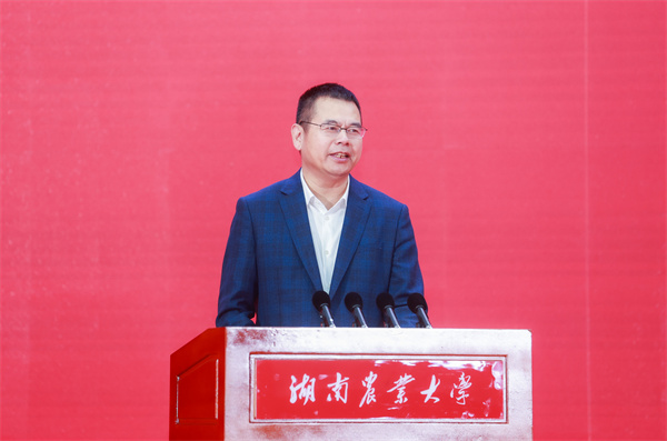 陈弘表示,在建校120周年之际举行此次签约仪式,是坚持以习近平总书记关于县域经济发展的重要讲话精神为指导,贯彻落实省委、省政府关于走出具有湖南特色的县域经济高质量发展新路子决策部署的重要举措,是共同追求美好事业的集中表达,标志着湖南农业大学与省内外各级政府、各个企业合作进入了一个全新的高度。他指出,要以此次签约仪式为契机,进一步携手校地校企、深化合作、强农报国、共创未来,不断提高科技成果转化和产业化水平,打造校地校企合作新样板,把党的二十大报告提出的“产教融合、科教融汇”战略决策变成灿烂的现实,推动县域经济高质量发展,实现强县富民,推动长沙早日建成全球研发中心城市、实现“三高四新”美好蓝图。
