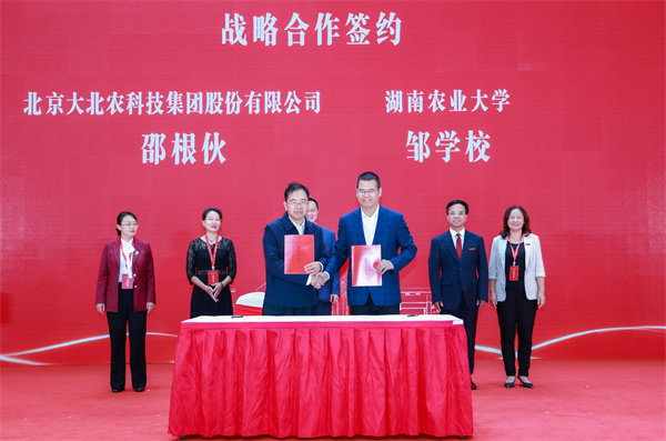 邹学校代表学校与北京大北农科技集团股份有限公司签订《战略合作协议》,双方将进一步深化产教融合,借助高校学科、人才优势与企业的产业与创新优势,打造龙头企业带动、集约集聚、全产业链发展的特色产业集群,不断壮大县域经济实力,为种业振兴、保障国家粮食安全、全面推进乡村振兴战略提供有力支撑。