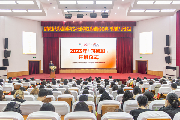 本网讯(风景园林与艺术设计学院 易振飞)金秋十月,万物丰收。10月15日,学校与鸿扬集团校企合作的“鸿扬班”正式开班。校党委书记陈弘,鸿扬集团董事长陈忠平,校企双方相关负责人出席开班仪式,风景园林与艺术设计学院院长何长征主持。