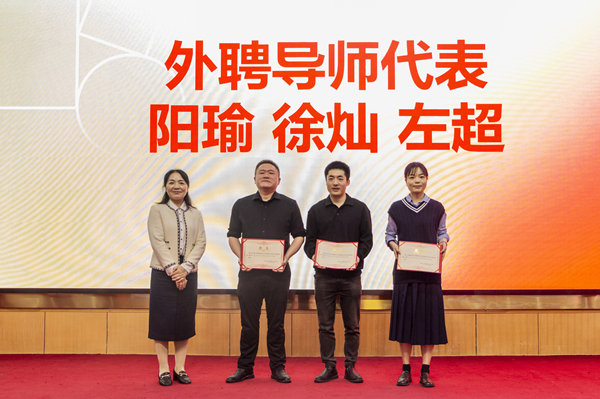 陈弘为客座教授颁发证书,风景园林与艺术设计学院组织员洪彬为外聘教师颁发证书。