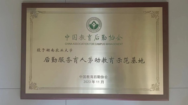 本网讯(后勤保障中心 谢春春)11月27日,第六届中国教育后勤展览会在深圳开幕。会上,全国28所高校获得“后勤服务育人劳动教育示范基地”授牌,我校是湖南省唯一获此殊荣的高校。