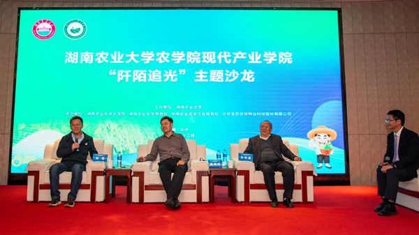 会议还举行了“阡陌追光”主题沙龙活动,中国科学院院士、清华大学教授谢道昕,杂交水稻全国重点实验室执行主任孙传清,北京金色农华科技股份有限公司副总经理林勇3位嘉宾与在场观众和农学院师生面对面互动交流,分享读书治学和家国情怀。