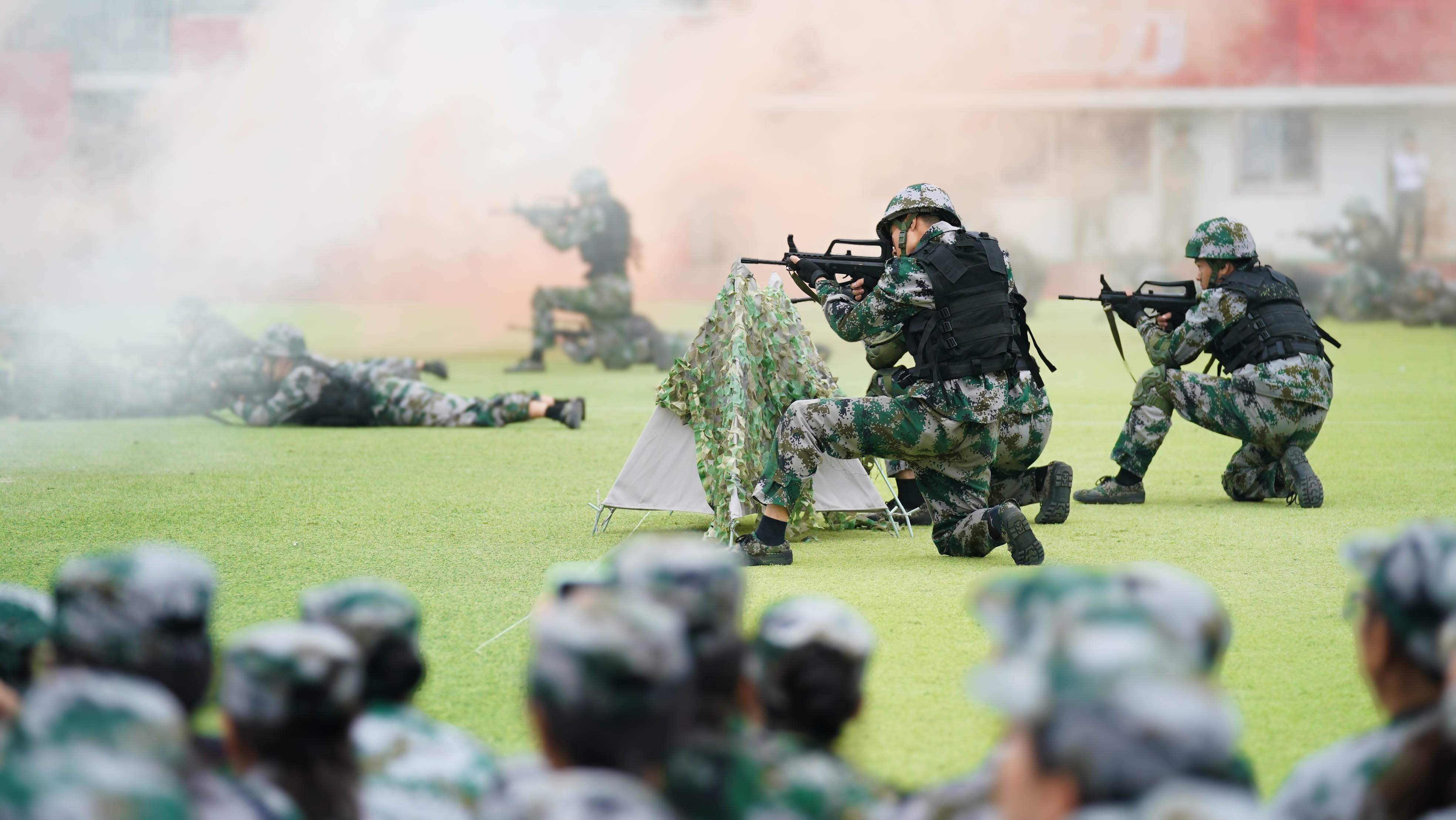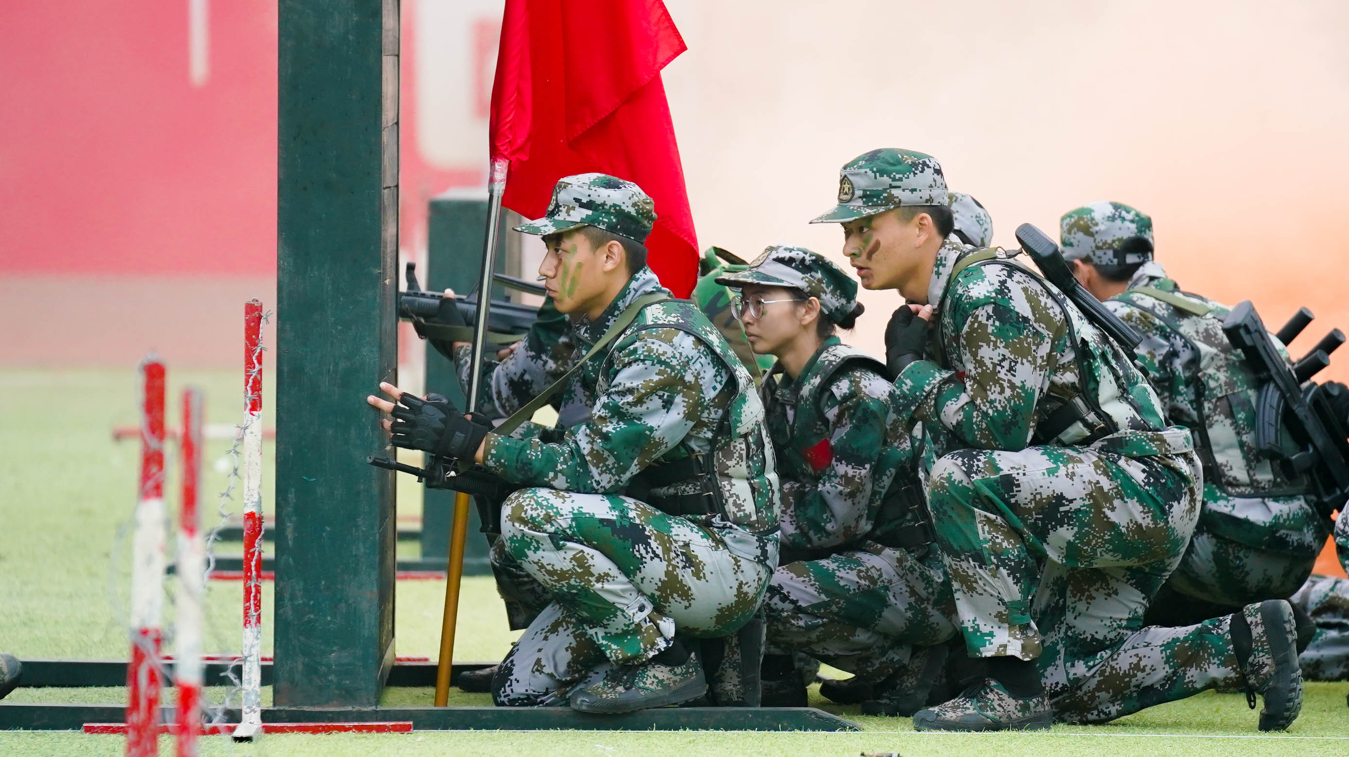 在军训总结表彰大会上,纠察队教官方阵和学院徒步方阵以威武的军姿、高昂的士气、整齐的步伐走过主席台接受分列式检阅。新生军训方阵表演展示了警棍术、刺杀操、军体拳、倒功操、综合战术演练等军事技能科目。