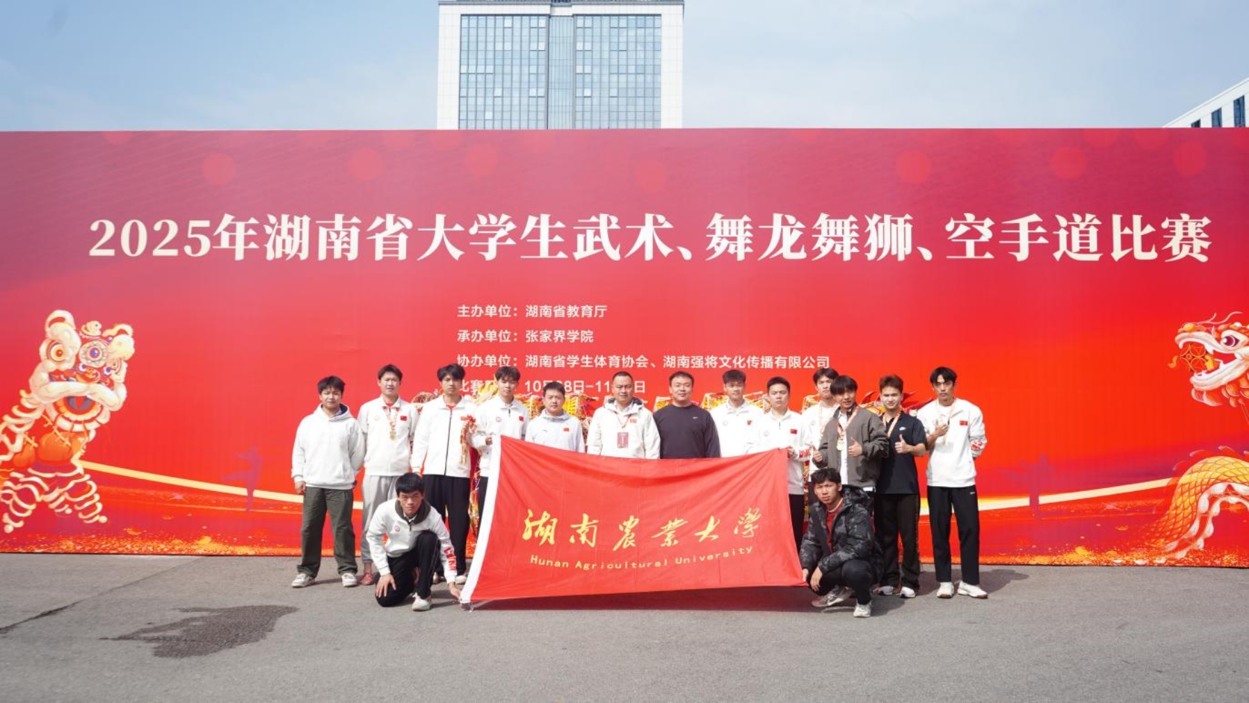 本网讯(体育学院 李德玺 张喆沅)10月30日至31日,由湖南省教育厅主办,张家界学院承办的2025年湖南省大学生武术、舞龙舞狮、空手道比赛在张家界学院举行。其中,舞龙舞狮项目作为赛事开篇率先展开比拼,共有23支代表队参赛。我校舞龙队凭借以《稻草龙庆丰年》为主题的传统舞龙表演,从378名舞龙舞狮选手中脱颖而出,荣获传统舞龙项目冠军。这是该校舞龙队继2024年夺得湖南省大中学生舞龙舞狮比赛冠军后,再次在这项省级权威赛事中折桂。
