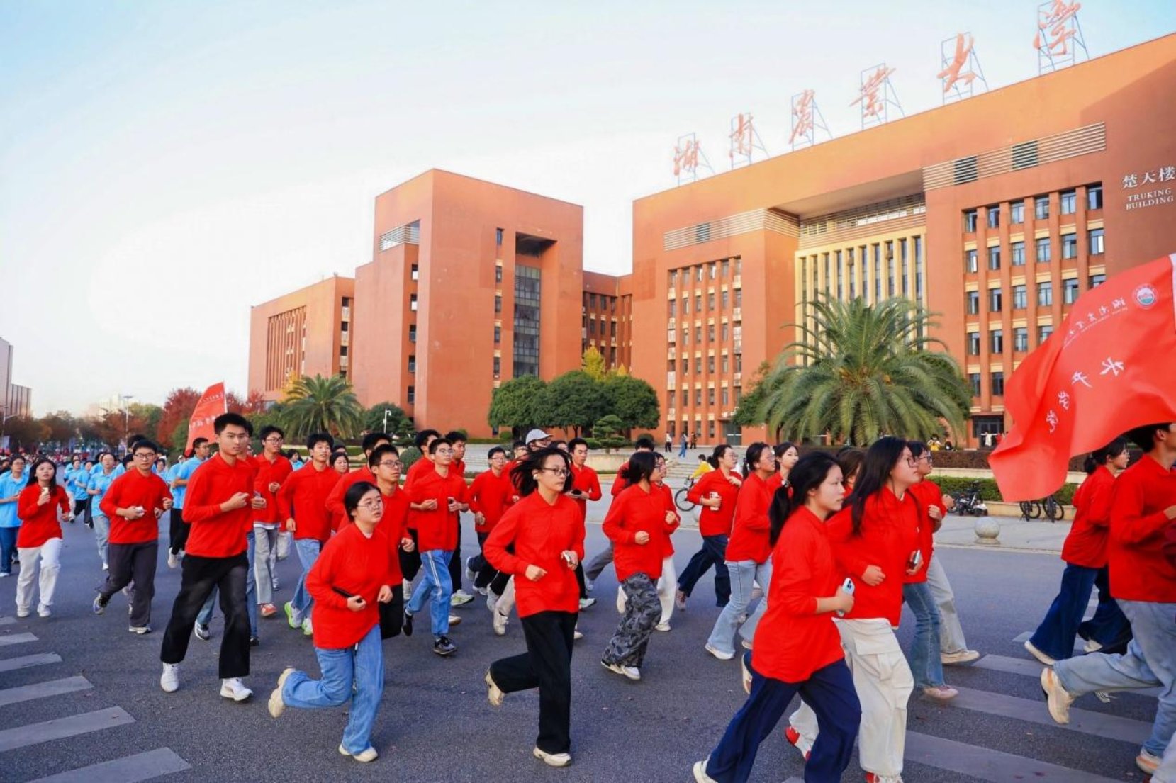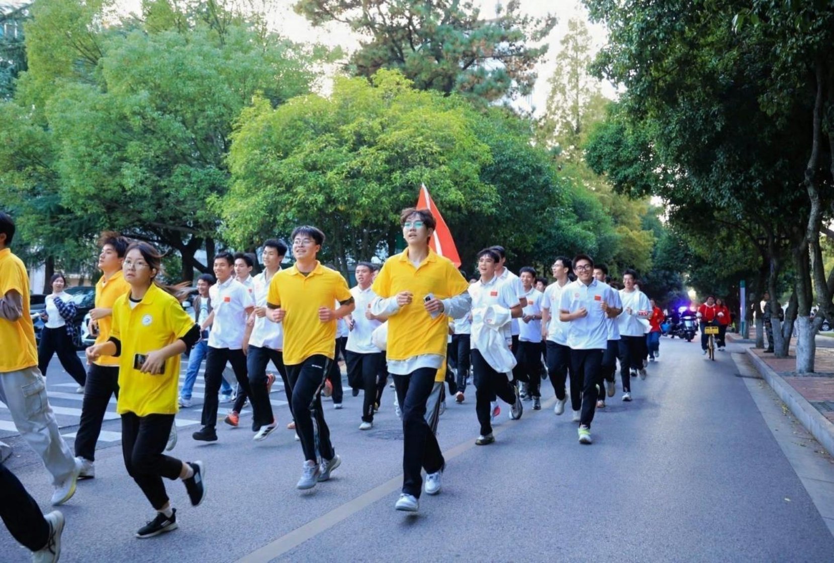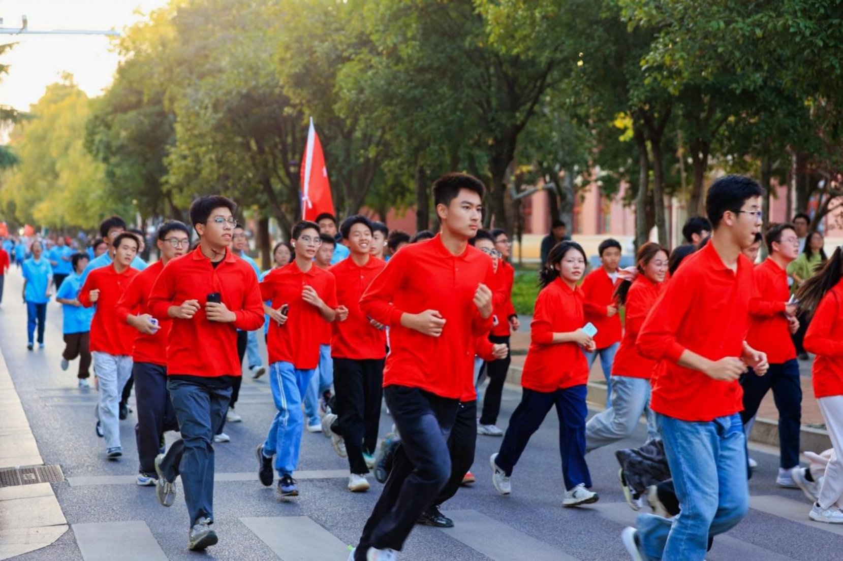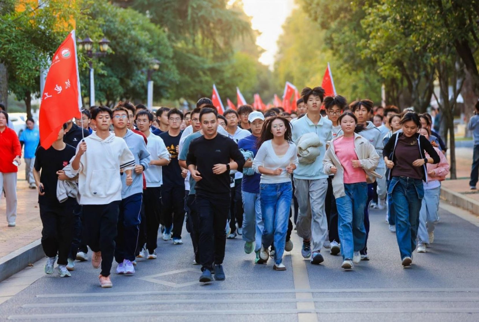随着鸣枪发令,活动正式开始。各方阵依次开跑,从东田径场出发,沿校园主干道行进,全程约3公里。师生们步伐稳健、口号响亮,展现出湘农师生团结奋进、昂扬向上的精神风貌。